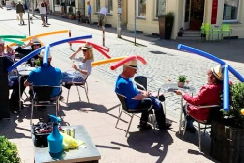 Imagine 21/05/2020 -19:36 News Video. Un restaurant din Germania oferă clienților pălării pentru a menține distanța