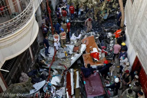 Imagine 22/05/2020 -18:10 News Cel puţin doi pasageri au supravieţuit accidentului aviatic din Pakistan