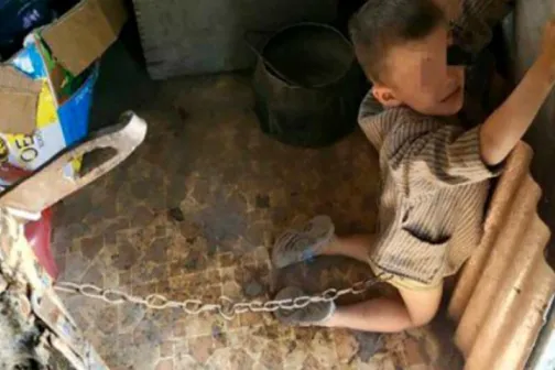 Imagine 01/07/2019 -18:11 News Înfiorător. Un copil de 6 ani, ținut legat cu lanțuri și bătut de tatăl său