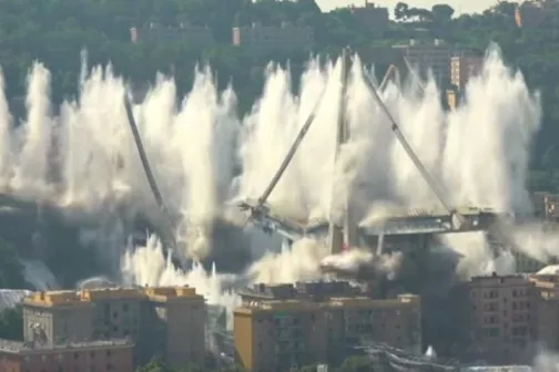 Imagine 28/06/2019 -15:10 News Momentul exploziei. Podul Morandi din Genova, unde au murit 43 de oameni, inclusiv un moldovean, a fost demolat