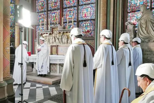 Imagine 17/06/2019 -08:44 News Preoţii au purtat căşti, la prima slujbă de la Notre-Dame. Care a fost motivul?