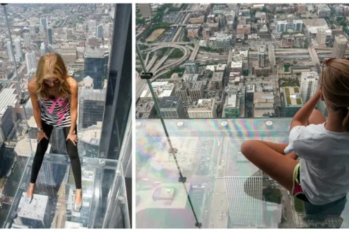 Imagine 13/06/2019 -22:20 News Video. Podeaua de sticlă al unui zgârie-nori din Chicago a crăpat la etajul 103, sub picioarele unor turiști