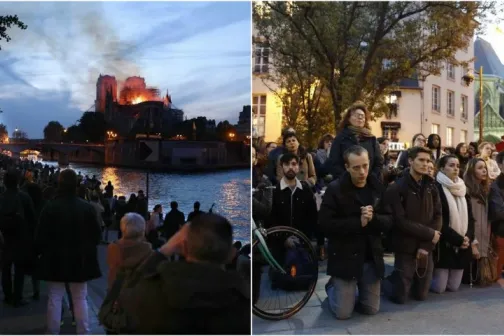 Imagine 15/04/2019 -23:14 News Gest emoționant de solidaritate! Francezii îndurerați au început să cânte lângă Catedrala Notre-Dame și se roagă pentru simbolul Parisului