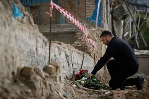 Imagine 19/06/2025 -18:50 News Zelenski a vizitat blocul de nouă etaje din districtul Solomianskii vizat de un atac rus cu rachetă marţi, soldat cu 28 de morţi, ”ras” în parte de la subsol şi până la acoperiş