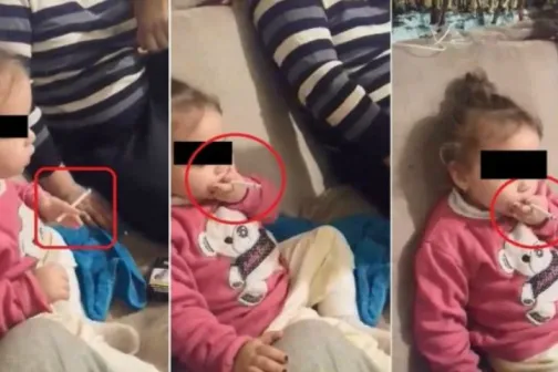 Imagine 20/12/2017 -13:00 News Imagini video revoltătoare! O fetiță de doar doi anișori este încurajată să fumeze și să bea cafea