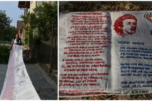 Imagine 25/05/2017 -21:35 Topuri O româncă a cusut cu acul și ața versurile poeziei ,,Luceafărul” de Mihai Eminescu!