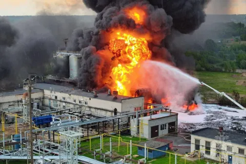 Imagine 07/06/2025 -16:26 Știri externe Incendiu la rafinăria Lukoil din Kstovo, Rusia, după un posibil atac cu dronă
