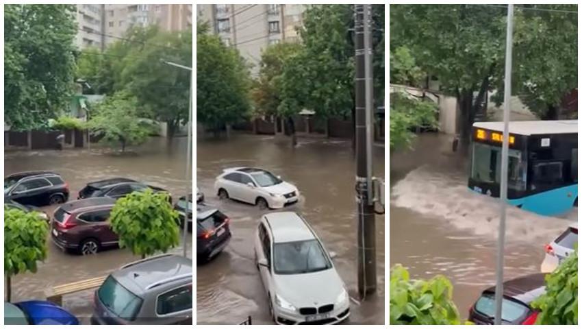 Ploaia din această seară a făcut din nou ravagii în Capitală. Mai multe străzi s-au transformat în râuri, iar zeci de șoferi au rămas blocați în trafic.