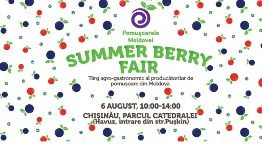 Vă invităm la ultima ediție SUMMER BERYY FAIR din această vară! Al treilea târg agro-gastronomic SUMMER BERRY FAIR va avea loc pe 6 august în Parcul Catedralei, lângă havuz, intrarea de pe str. Pușkin, de la ora 10 până la 14. Vedetele acestei ediții SUMMER BERRY FAIR, sunt: afinele, aroniile, murele, goji, căpșunile târzii, cătina și măceșul.