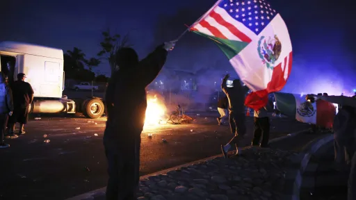 A demonstrator waves an American and Mexican flag during a protest in Compton, Calif., Saturday, June 7, 2025, after federal immigration authorities conducted operations.,Image: 1008461710, License: Rights-managed, Restrictions: This content is intended for editorial use only. For other uses, additional clearances may be required., Model Release: no, Credit line: Ethan Swope / AP / Profimedia