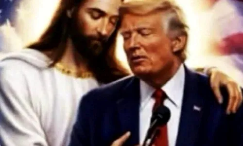 Președintele Statelor Unite, Donald Trump, a publicat pe Truth Social o nouă imagine generată cu ajutorul inteligenței artificiale, în care apare îmbrățișat de Iisus Hristos. Imaginea, preluată de la un utilizator și redistribuită de liderul american, îl arată pe Trump cu ochii închiși, sprijinindu-și tâmpla de Iisus, în fața unui microfon, cu steagul american în fundal. Postarea originală sugera că „Dumnezeu ar putea să-și joace cartea Trump” în contextul unor presupuse amenințări „demonice”.