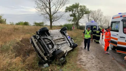 Din informațiile preliminare, un Renault Megane a derapat de pe carosabil, după ce șoferul nu a păstrat distanța și a atins remorca unui camion, moment în care a pierdut controlul mașinii și s-a inversat.