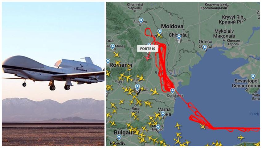 Avionul fără pilot a făcut deja mai multe ture la granița cu R. Moldova, dar și deasupra Mării Negre.