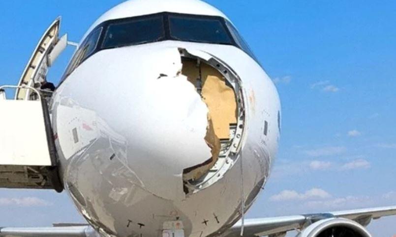 Impactul a declanşat alarme la bord şi a provocat panică în avion, după ce cei 182 de pasageri au fost nevoiţi să-şi pună masca de oxigen.