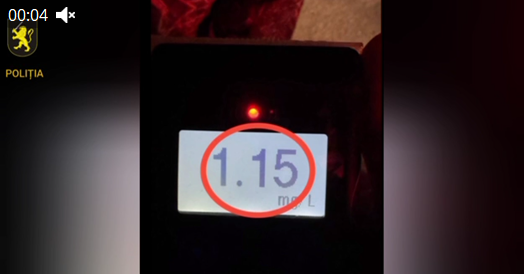 Aparatul Drager a indicat un nivel de alcool de 1,15 mg/l vapori în aerul expirat.