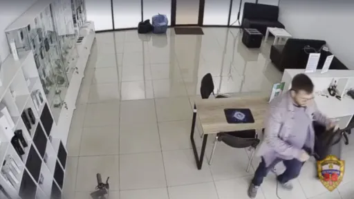 După ce a luat cele 53 de telefoane și 53.000 de ruble (aprovimativ 550 de euro) din casă, el iese foarte senin pe ușa din față. Așa s-a încheiat prima și ultima lui zi de muncă la magazin. Surse din poliție au declarat pentru lenta.ru că bărbatul a folosit documente falsificate pentru a se angaja ca director de vânzări la magazinul de electronice, obținând pe loc un set complet de chei de la magazin.