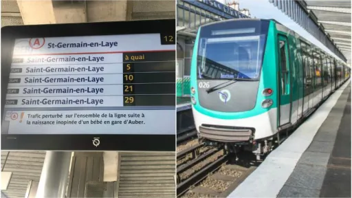 Traficul a fost întrerupt în ambele sensuri de mers timp de trei sferturi de oră pe acest tronson deosebit de aglomerat al RER, Réseau Express Régional, a declarat un purtător de cuvânt precizând că naşterea a avut loc în jurul orei 11:40, Purtătorul de cuvânt a adăugat că aproximativ 15 persoane, pompieri, ofiţeri de poliţie şi personal de la RATP, au ajutat-o pe mamă să nască în timp ce garnitura de tren a fost evacuată în linişte.