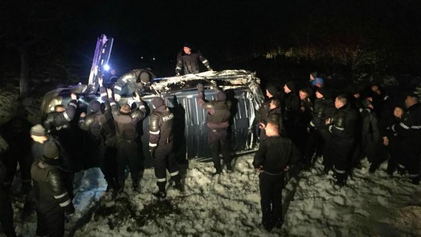 Ieri seara, în jurul orei 23:30, pe traseul Chișinău-Leușeni, un microbuz cu oameni s-a răsturnat din cauza carosabilului și condițiilor meteo nefavorabile.