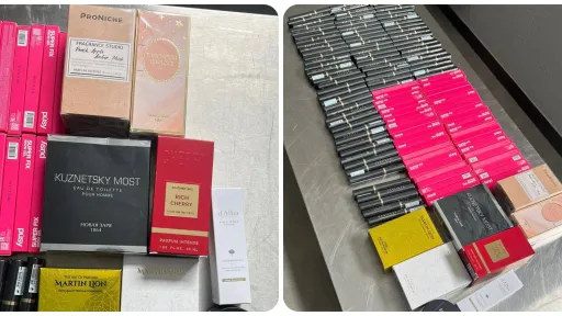 Urmare a controlului fizic detaliat al mijlocului de transport, a fost depistat un lot comercial de parfumuri și produse cosmetice, nedeclarat autorității vamale.