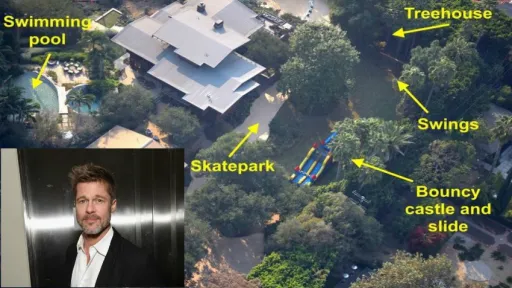 Paparazzii americani au reuşit să fotografieze curtea casei lui Brad Pitt, iar ce au descoperit acolo este de-a dreptul uluitor. Actorul şi-a ridicat propriul parc de distracţii, cu toate că presa de peste Ocean notează că până în prezent el avea voie să îşi vadă copiii doar câteva ore pe săptămână. În curtea casei, Brad Pitt a făcut un skatepark, o casă în copac, câteva leagăne şi multe alte facilităţi de care cei mici s-ar putea bucura. Mai mult decât atât, pe terenul actorului se afla o piscină care până acum nu era funcţională, dar în prezent este echipată complet şi gata de folosire. Brad Pitt a cumpărat locuinţa în anul 1994, cu 1,7 milioane de deloari, iar de atunci a investit foarte mulţi bani atât în casă, cât şi în curte şi grădină.sursa