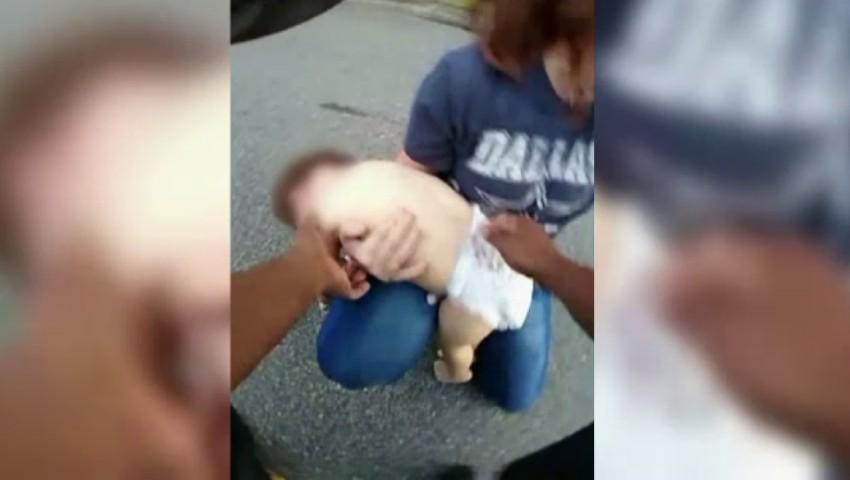 Sub ochii disperaţi ai mamei, bărbatul i-a făcut copilului manevrele de resuscitare necesare, şi a reuşit să-l salveze.La un moment dat, colega agentului o ia de-o parte pe mama bebeluşului, sperând să o mai liniştească. În tot acest timp, ofiţerul continuă să-i aplice micuţului lovituri pe spate, aşa cum cere procedura de resuscitare.Un alt coleg îi sare în ajutor şi îi verifică gura copilului să vadă dacă nu cumva obiectul care îi astupa căile respiratorii a ieşit. Cum nu s-a întâmplat aşa, manevrele de resuscitare au continuat.Cea care i-a dat viaţă îi striga numele în continuu. În ciuda atmosferei tensionate din jur, agentul nu s-a oprit nicio secundă. Ştia că în joc e viaţa unui copil de doar un an şi jumătate. A continuat să execute compresiile toracice aşa cum fusese instruit şi chiar în momentul în care unul dintre camarazii săi se pregătea să îi facă respiraţie gură la gură, micuţul a dat semne că şi-a revenit. Dus la spital, medicii au confirmat că în prezent viaţa să nu mai este în pericol. E încă speriat de cele întâmplate, dar îşi va reveni.