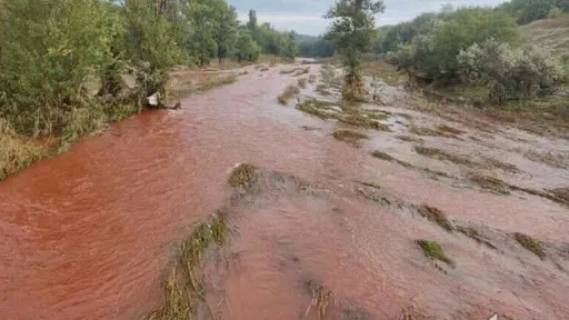 Un râu din Ucraina a devenit roșu precum sângele, la o zi după ce Rusia a lovit un baraj într-unul dintre cele mai mari orașe din Ucraina, Krivoi Rog, forțând locuitorii să-și părăsească casele inundate.