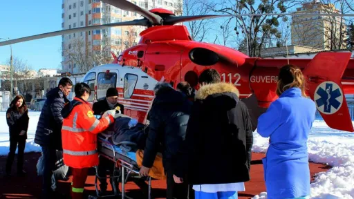 Ieri dimineața, un tânăr de 27 de ani, care are membrele inferioare amputate, a fost preluat de un elicopter SMURD Galați pentru a fi transportat la un spital din București.