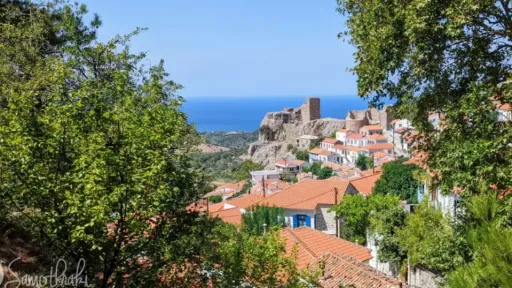 Satul Chora se află în inima insulei și oferă o priveliște spectaculoasă asupra Golfului Livadi. Zona se aseamănă puternic cu Santorini. Casele mici și albe, străduțele înguste și însorite sau numeroasele lăcașuri de cult amintesc de această destinație faimoasă.