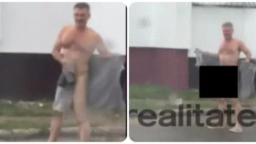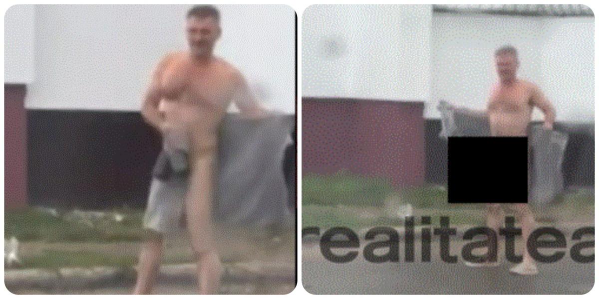 Un cititor al site-ului a expediat imagini video din care se vede că bărbatul, aproape gol, își afișează organele genitale.