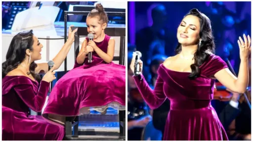 Cele două au cântat împreună un frumos colind de Crăciun și au reușit să stârnească chiar și lacrimi de bucurie.Micuța Eva s-a descurcat excelent și se vede că-i calcă pe urmă mamei sale. Momentul a fost unul presărat cu multă emoție și cu ropote de aplauze. Andra și Eva au interpretat împreună colindul ”Deschide ușa creștine”, scrie impact.ro.