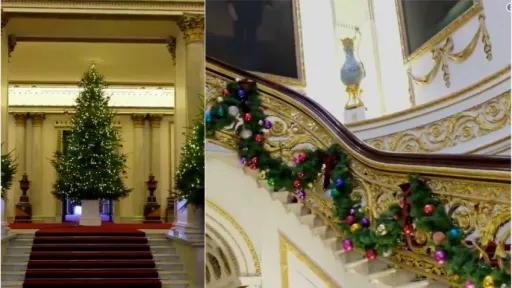 O mulțime de brazi verzi, toți naturali au fost decorați cu globulețe sub formă de coroană și trăsuri. Iată și primul clip oficial cu decorațiunile de la Palatul Buckingham.https://youtu.be/Bay__bEA6Mo