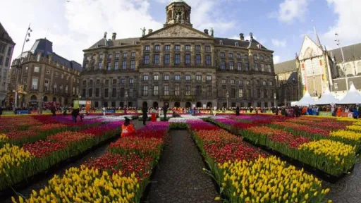Peisaj de poveste în inima Amsterdamului. De Ziua Naţională a Lalelei, peste 200.000 de flori au creat un uriaş covor multicolor în Piaţa Centrală din capitala Olandei.