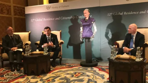 În cadrul conferinței, Chiril Gaburici a avut o conversație cu celebrul robot Sophia, unul dintre cei mai cunoscuti roboti umanoizi din lume. Sophia i s-a adresat lui Chiril Gaburici pe nume. Aceasta l-a felicitat pe ministrul Economiei cu lansarea programului, dorind totodată să afle cât de distinct este programul moldovenesc și cu ce se deosebește de concurenți.Gaburici i-a răspuns Sophiei că pașaportul moldovenesc oferă șansa de a călători fără viză în peste 120 de țări, printre care Rusia și Turcia. Sophia a devenit celebră în toată lumea, cu milioane de admiratori şi contestatari pentru că a fost programată să semene cât mai mult cu inteligența umană: să aibă preferinţe şi sentimente, să poarte conversaţii sau să imite peste 50 de expresii faciale. Totodată, robotul e programat să aibă un ridicat simţ al umorului.https://youtu.be/ClUxJw9w-eQ