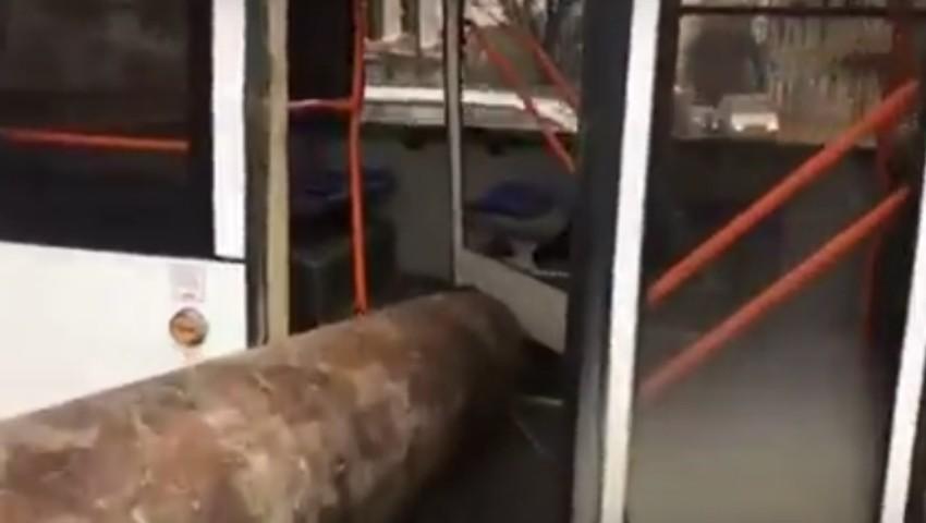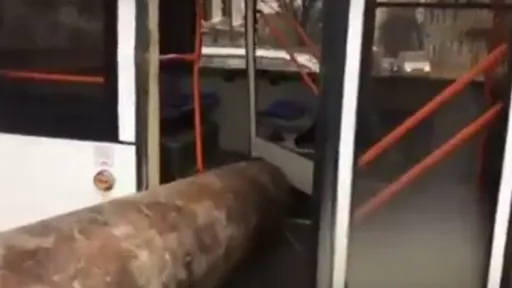 Un troleibuz de pe ruta 29 a rămas fără ușile din spate. Asta pentru că o țeavă, care era transportată de un camion, a intrat în ușa din spate a mijlocului de transport.