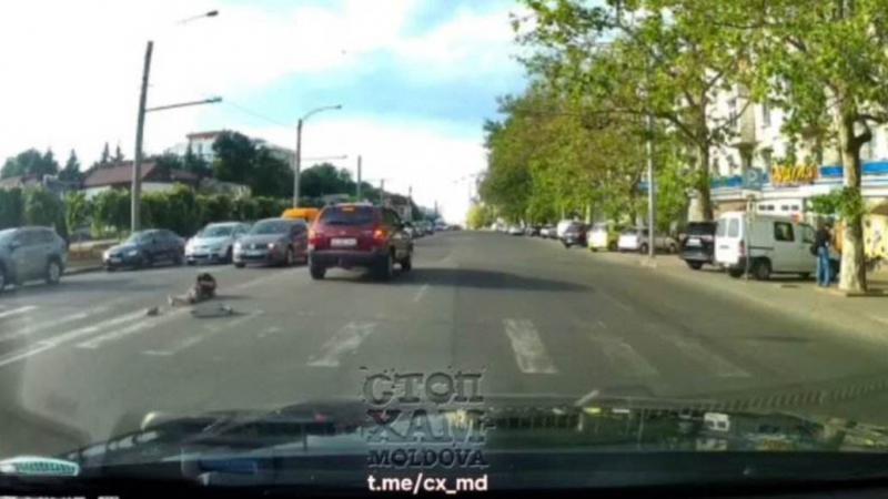 Un copil pe o trotinetă a fost lovit de o mașină, în timp ce a încercat să traverseze strada, pe o trecere de pietoni la Botanica. Momentul impactului a fost publicat pe rețele.