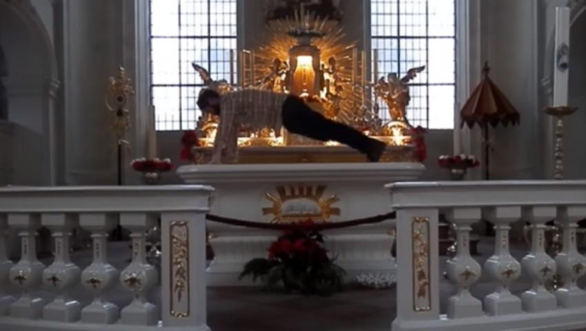 Un vlogger a fost amendat cu 600 de euro, după ce s-a filmat făcând flotări sprijinit pe un altar dintr-o biserică.