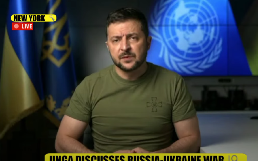 „A fost comisă o crimă împotriva Ucrainei şi cerem o pedeapsă justă” împotriva Rusiei, a declarat Volodimir Zelenski adresându-se Adunării Generale a ONU prin mesaj video. Deoarece nu a putut călători la New York, preşedintele ucrainean a obţinut această autorizaţie excepţională din partea statelor membre ale Naţiunilor Unite.