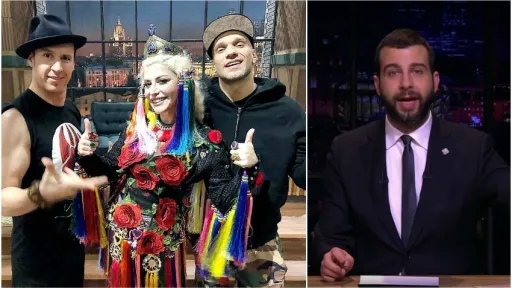 Zdob și Zdub, Loredana și rapperul rus Ligalize au încins atmosfera în platoul celui mai mare talk show din Rusia, Vecernii Urgant (Вечерний Ургант), de la Pervay Kanal.