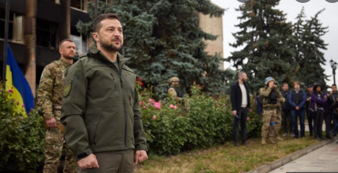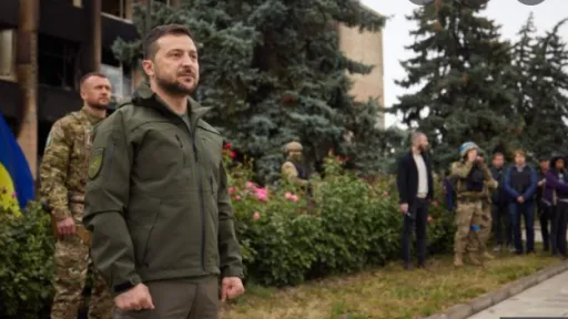 Preşedintele Volodimir Zelenski a efectuat miercuri o vizită surpriză în Izium, oraş recent eliberat după luni de ocupaţie rusească. ''Președintele Ucrainei a mulțumit soldaților pentru eliberarea teritoriilor ucrainene și a ridicat solemn steagul ucrainean deasupra consiliului municipal", a transmis Brigada 25 Separată Aeropurtată Sicheslav.