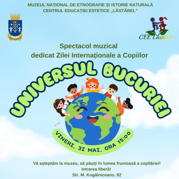 Centrul Educației Estetice „Lăstărel”, în parteneriat cu Muzeul Național de Etnografie și Istorie Naturală, organizează vineri, 31 mai, ora 15:00, un spectacol muzical cu genericul „Universul copilăriei”, dedicat Zilei Internaționale a Copiilor.