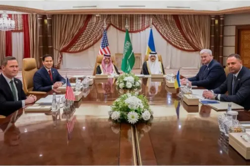 Imagine 11/03/2025 -13:13 News Primele imagini de la negocierile dintre Statele Unite și Ucraina, desfășurate în Arabia Saudită