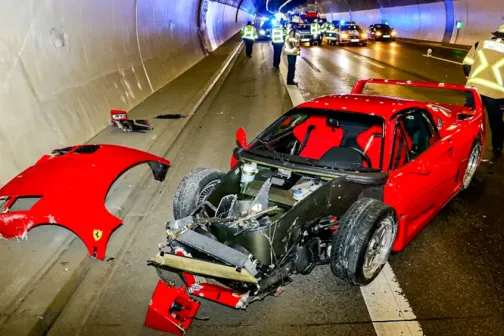 Imagine 01/03/2025 -14:59 News Un Ferrari de 440.000 de euro, distrus de un șofer în timpul unui test de viteză, înainte de a fi cumpărat