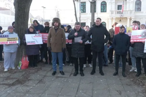 Imagine 13/02/2025 -14:11 News Partidul fugarului Șor a adus la sediul ambasadei SUA o scrisoare pentru președintele american: ”Domnule Trump, vă rugăm să salvați Moldova”