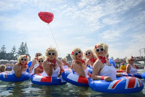 Imagine 12/02/2025 -18:38 News Sute de persoane deghizate în legendara actriță hollywoodiană Marilyn Monroe au plonjat în ocean