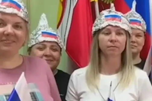 Imagine 14/11/2024 -08:35 News „Pălăriile Patriei”. Mai multe profesoare din Rusia, păcălite să confecționeze și să poarte coifuri din staniol. Cine și cu ce scop a făcut farsa