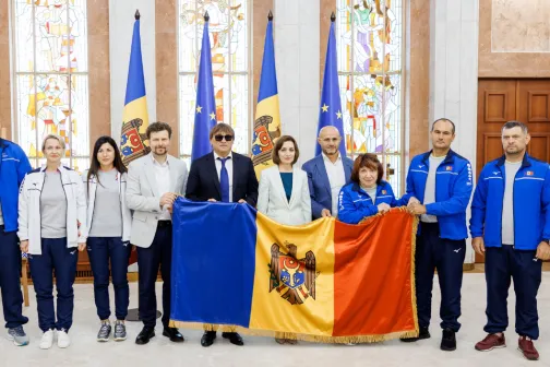 Imagine 12/08/2024 -10:59 News Maia Sandu a înmânat drapelul sportivilor care ne vor reprezenta țara la Jocurile Paralimpice de la Paris