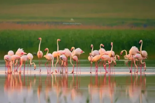 Imagine 05/08/2024 -07:09 News Imagini rare în Delta Dunării! O colonie de păsări flamingo a poposit în apele de acolo