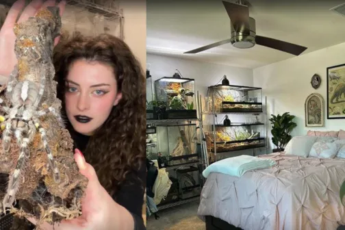 Imagine 31/07/2024 -20:26 News Povestea tinerei care deține peste 200 de animale exotice. Doarme în pat cu reptile și șobolani