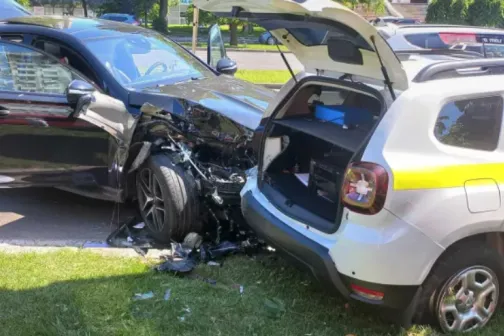 Imagine 26/06/2024 -10:27 News Trei automobile s-ar fi ciocnit în lanț pe o stradă din Chișinău: O mașină a poliției, avariată