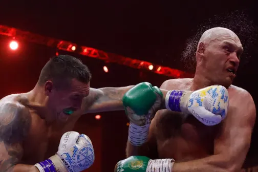 Imagine 19/05/2024 -10:18 News Boxerul ucrainean Oleksandr Usik l-a învins la puncte pe britanicul Tyson Fury